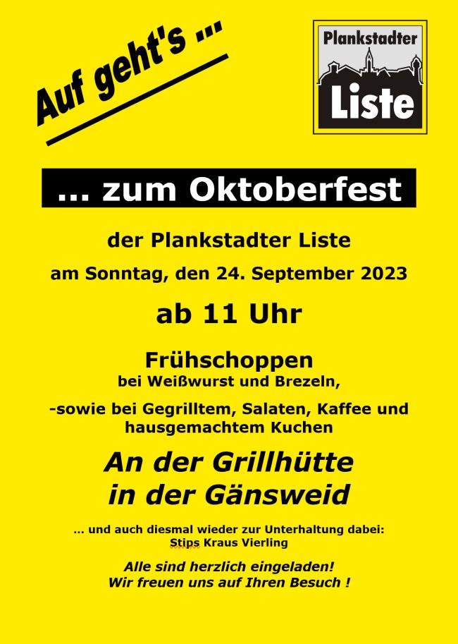 Und last, but not least unsere PlaLi-Familie lebt auch durch unser gesellschaftliches Beisammensein, z.B. beim Neujahrsempfang (hier gilt unser Dank der Familie Hallwachs) und beim Oktoberfest, das in diesem Jahr ein so toller Erfolg war! Dies zeigt umso mehr, wie sehr die PlaLi in der Mitte der Pl nkschder Bev lkerung angekommen ist und auch als politische Kraft wahrgenommen und wertgesch tzt wird!