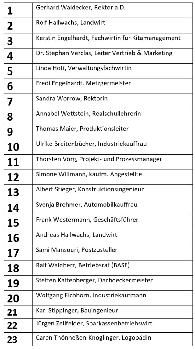 Die Kandidaten der Plankstadter Liste f r die Gemeinderatswahl: